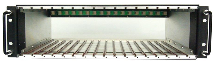 這是一個標準的19英寸寬gsdt-ch底盤。底盤是3個機架單元高有17槽容納所有模塊。背板接口可以提供模塊間的通信和分布。
